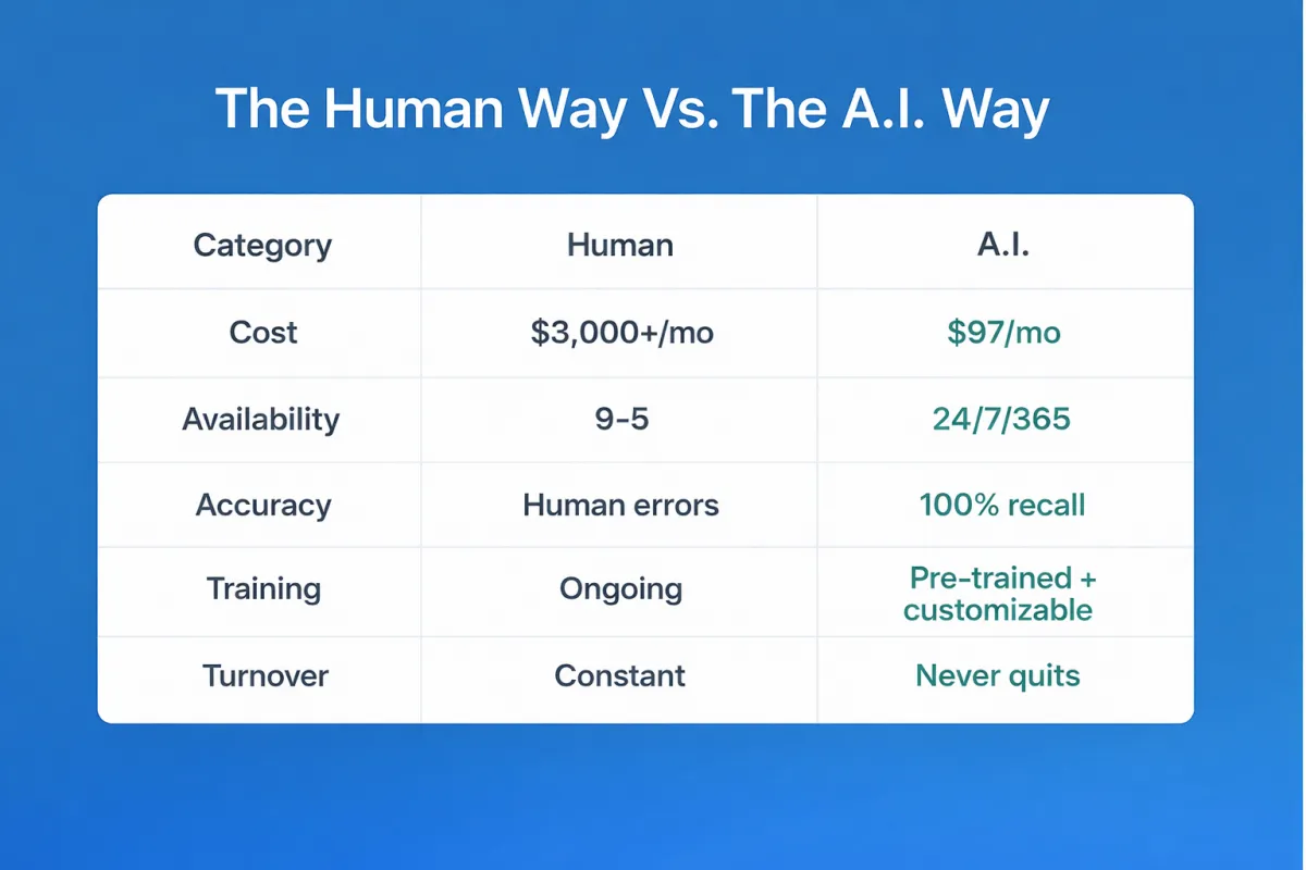 “We were missing 10+ calls a day before. The A.I. Employee now books jobs while we sleep.”